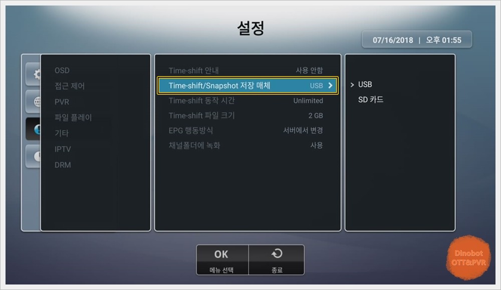 ' Time-shift/Snapshot 저장 매체 ' 설정을 통해서 ' 타임 시프트 ' 파일과 스냅샷 이미지 저장 장치를 지정 할 수가 있습니다.