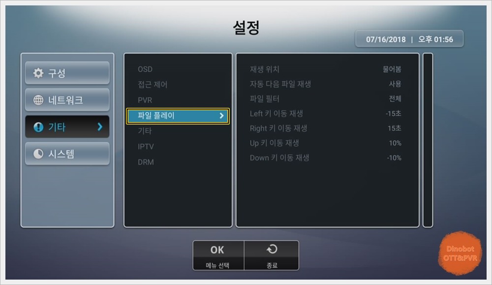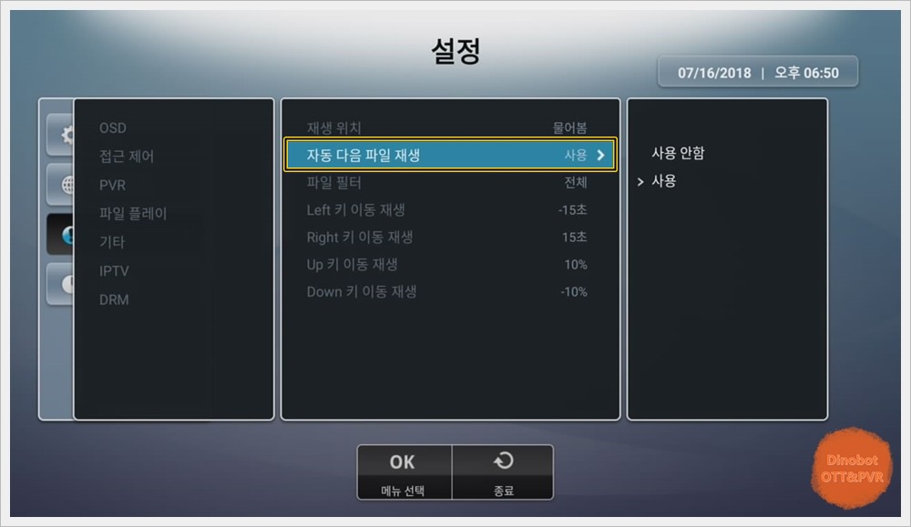 ' 파일 플레이 ' 설정은 파일 재생에 관한 설정 입니다.