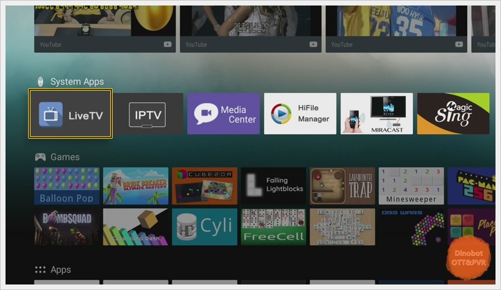 설정을 위해서 LiveTV로 앱을 실행 합니다.