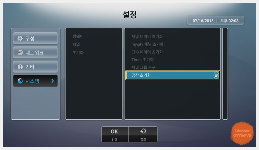' 공장 초기화 ' 설정은 ATV 설정에 동일한 옵션이 있어서 설정하지 않습니다.