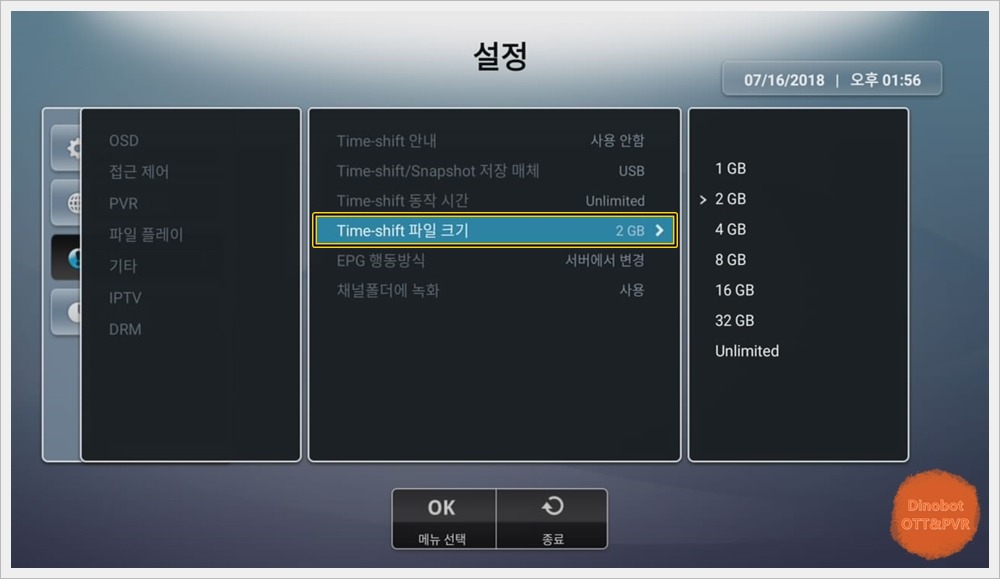 ' Time-shift 파일 크기 ' 설정을 통해서 ' 타임 시프트로 ' 저장되는 파일 크기 설정이 가능 합니다.