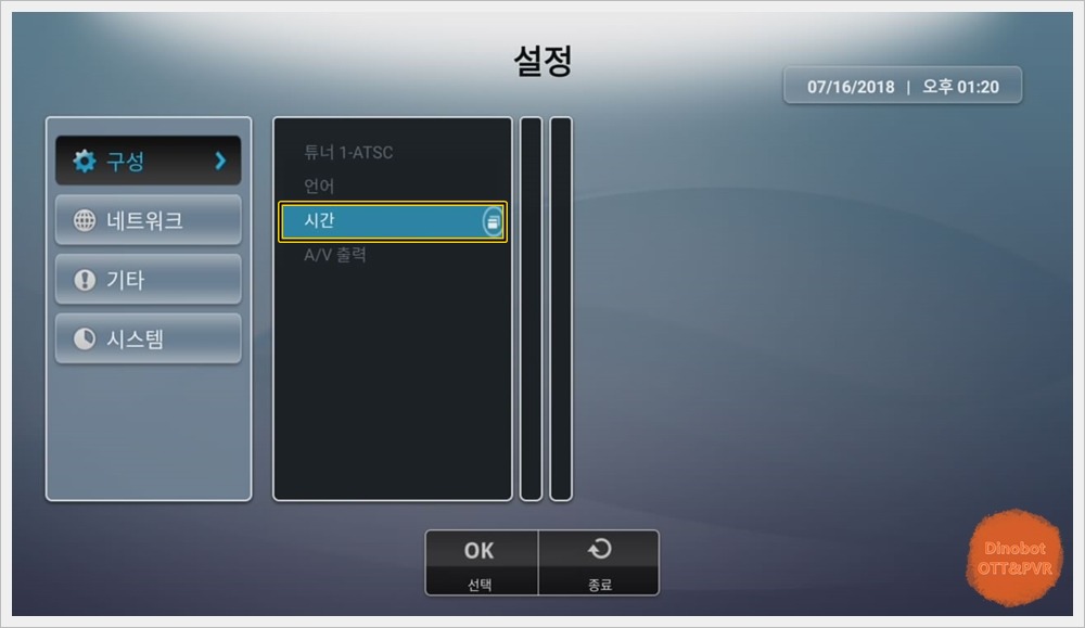 ' 시간 ' 설정은 ATV 설정에 동일한 옵션이 있어서 설정하지 않습니다.