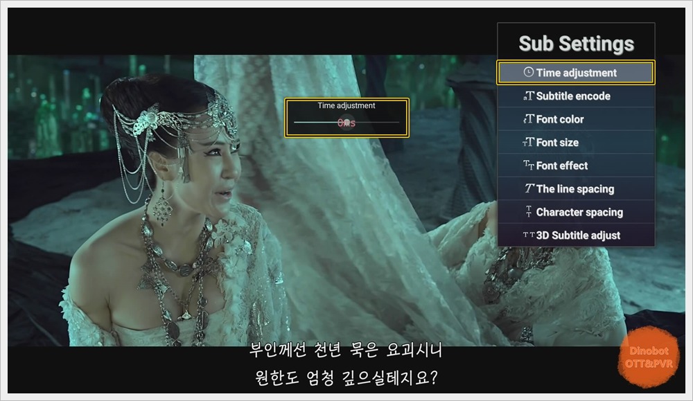 ' Time adjustment ' 자막 싱크 조절 옵션 입니다.