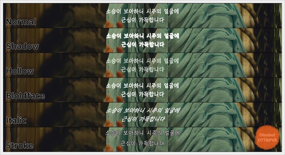 ' Font effect ' 자막 효과 설정 옵션 입니다.
