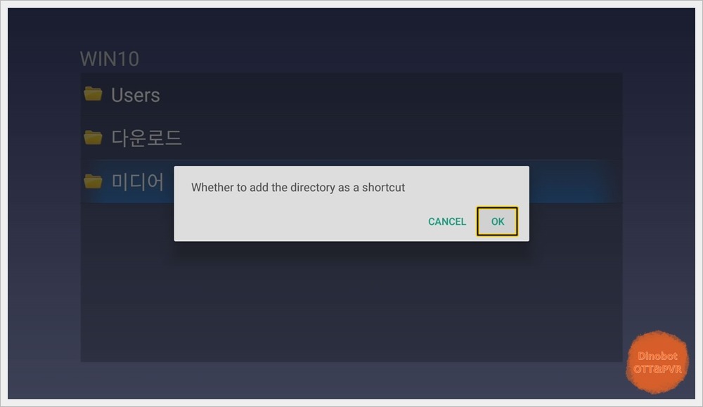 ' Whether to add the directory as a shortcut ' 메시지가 뜨면 ' OK ' 를 누르면